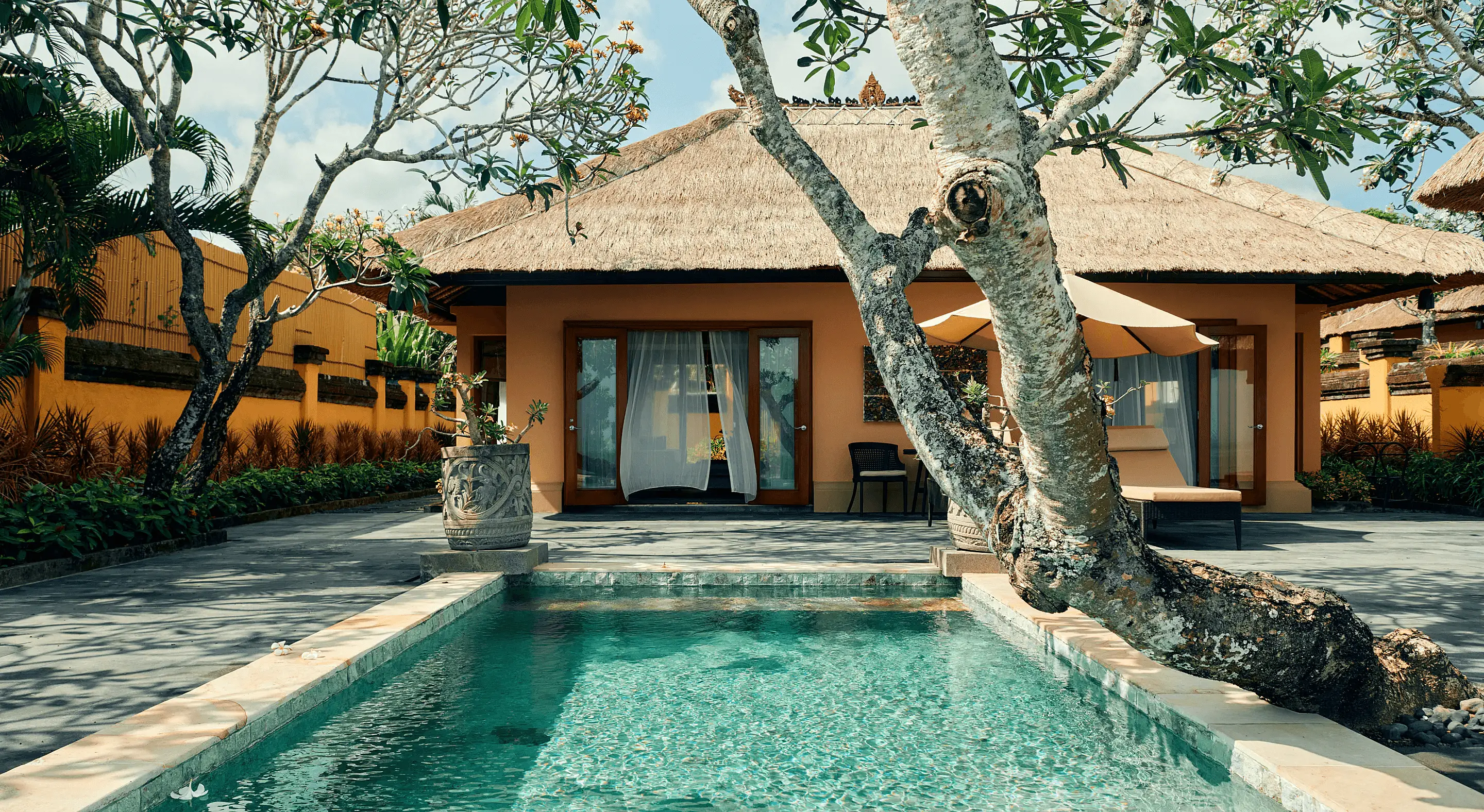 Perched atop the cliff's edge, overlooking the Jimbaran sea, a distinctive Balinese villa awaits. The rooms are spacious and grand, with a butler ready to lend a hand, offering attentive service tailored to your plan. The freedom to do anything, or nothing at all. Surrounded by graceful silence and nature's embrace, take an extraordinary escape in this secluded space.